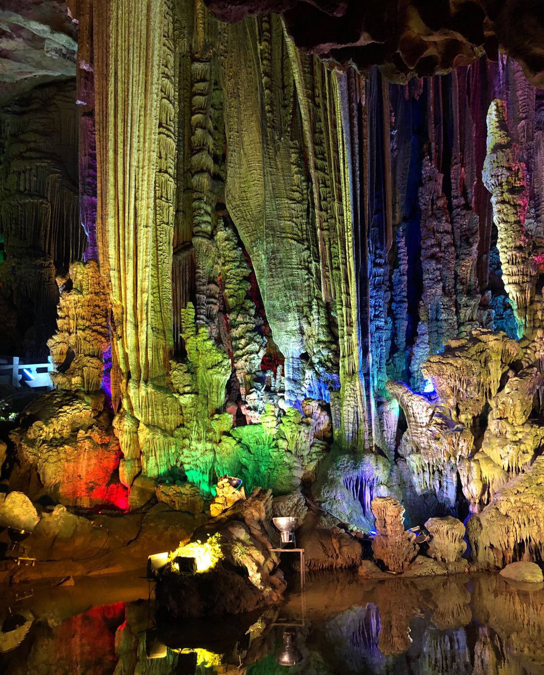沿著參觀路線一路往上走,越往里越開闊,各種乳石石柱、石塔、石幔、石瀑……仿佛進入一個光怪陸離而又異彩紛呈的世界。這里面的鐘乳石讓我們不得不感嘆大自然的鬼斧神工,值得觀賞~