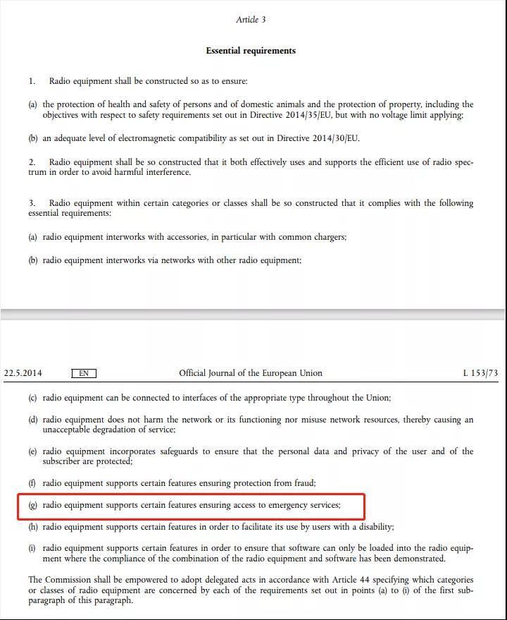 CE-RED認(rèn)證(EU)2019/320決議將強(qiáng)制實(shí)施,我們要注意什么?可以聯(lián)系我司環(huán)測威檢測了解詳情。隨著歐盟 (EU) 2019/320 決議強(qiáng)制實(shí)施日期(2022年3月17日)的臨近,智能手機(jī)進(jìn)入歐盟市場,必須支持獲得緊急服務(wù)的功能。