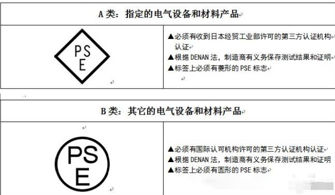 日本PSE認證圓形菱形一般如何區分?PSE 認證是日本強制性安全認證,用以證明電機電子產品已通過日本電氣和原料安全法 (DENAN Law) 或國際IEC標準的安全標準測試。日本的DENTORL法(電器裝置和材料控制法)規定,498種產品進入日本市場必須通過安全認證。其中,165種A類產品應取得菱形的PSE標志,333種B類產品應取得圓形PSE標志。