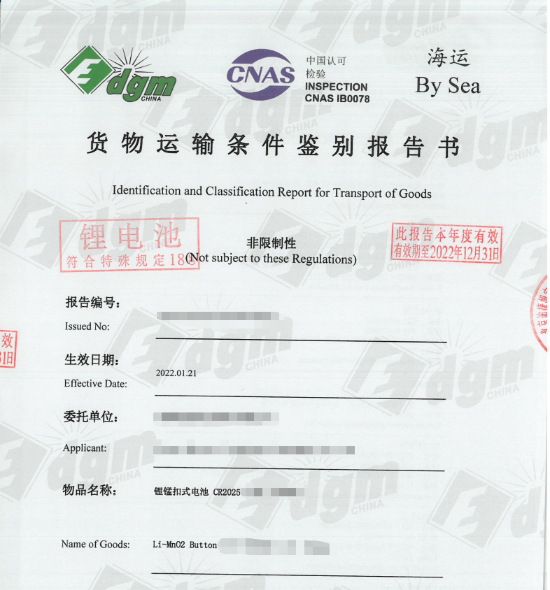 ·非帶電池的產(chǎn)品運輸鑒定報告,續(xù)期直接更新年度報告即可。