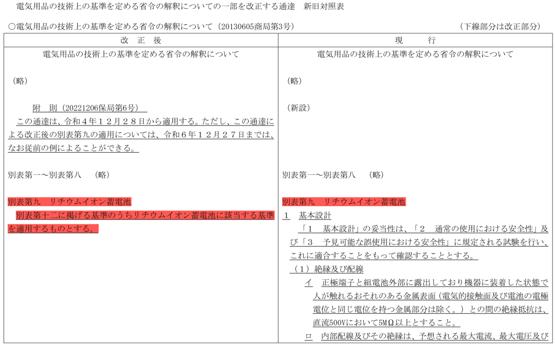 03.別表第九是2008年作為鋰離子蓄電池的標準在技術標準解釋中追加的,是參考當時的國際標準(IEC)制定的,但是之后沒有進行修改。